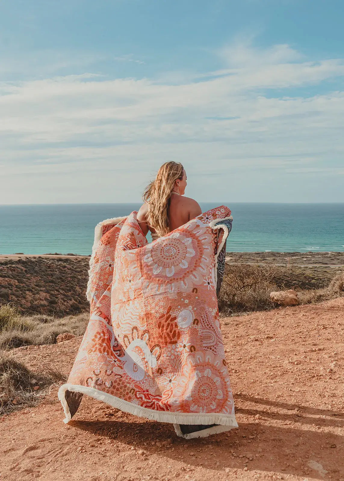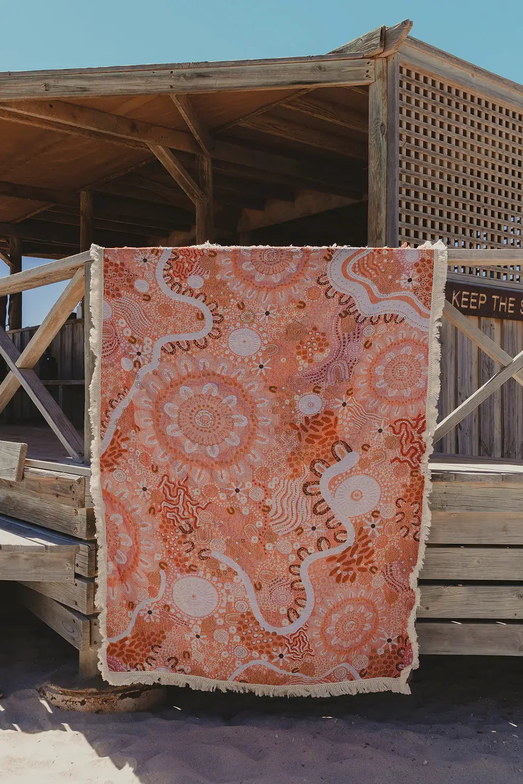 Introducing our dual-purpose woven throw rug, a versatile must-have for your home. It's practical and meaningful, featuring artwork with a unique story. Use it as a beach blanket, picnic rug, or to add an extra touch of coziness to your bed or couch. Made from 100% recycled cotton, our designs are not only stylish, but also environmentally friendly.