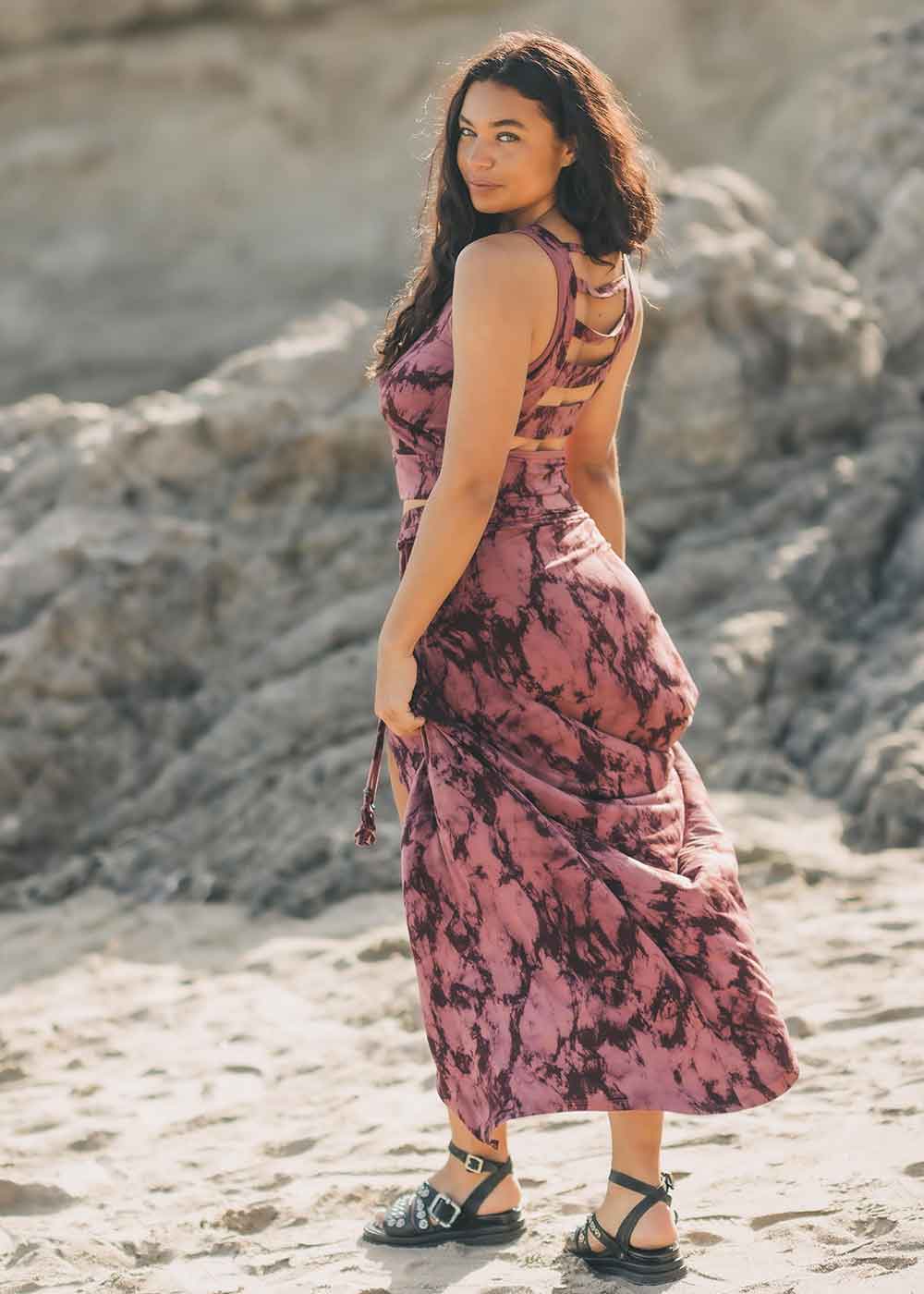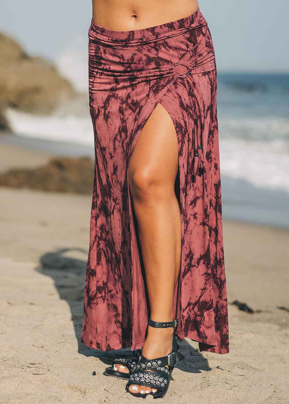 With a front slit, this skirt is perfect for braving the elements while keeping your spirit covered and free. The top stays secure to prevent any unexpected fashion mishaps. And whether you prefer a high waist or a low rider look, this skirt has got you covered, both literally and figuratively!