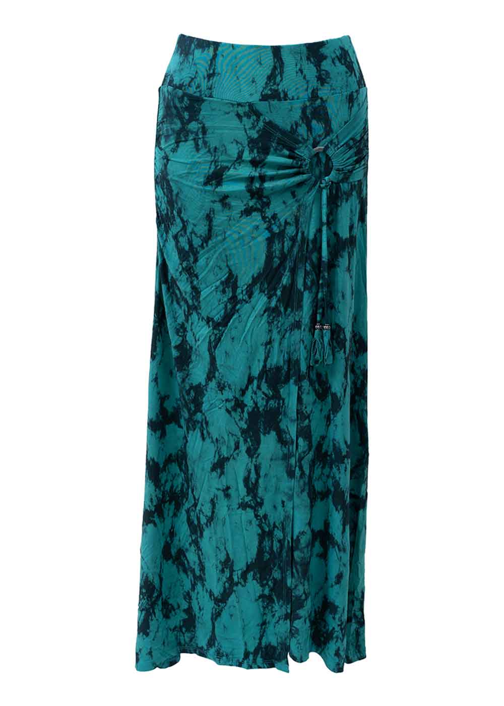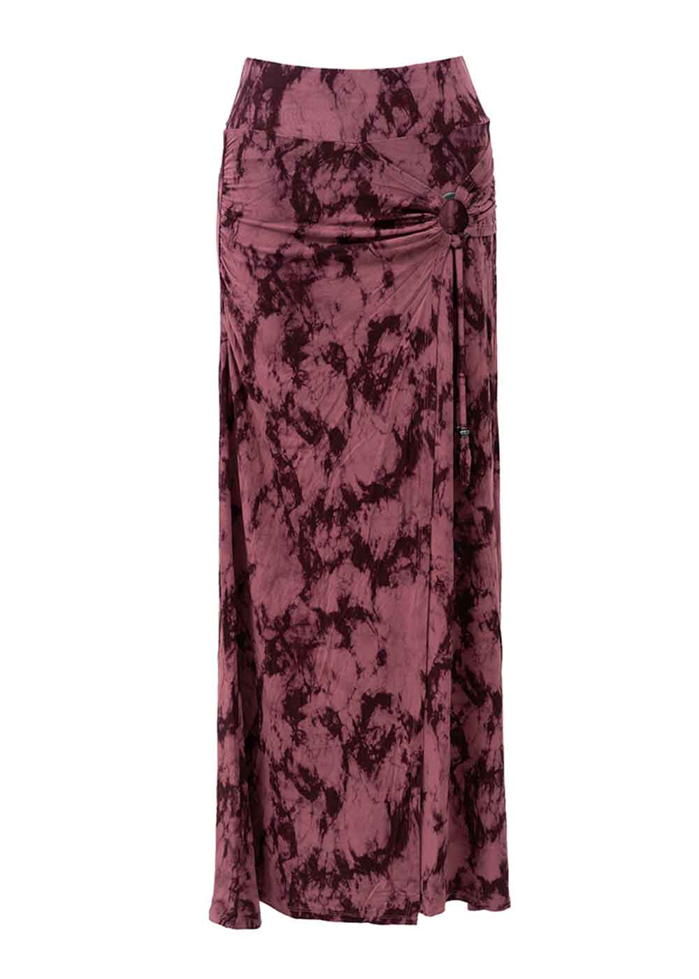 Get ready to fly high with this wrap skirt, in lovely feeling hemp and a funky Tie-dye print. The full length maxi-skirt is all wrapped up with a metal O-ring and strings adorned with beads.