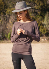 Lounge in style with our Hemp Lyocell Long Sleeve Tunic. Show off your playful side with a batwing boat neck and an oversized keyhole back. Perfect for a Flash Dance moment or casual day out, this tunic offers comfortable butt-coverage with leggings. Don't miss out on this unique and versatile piece!