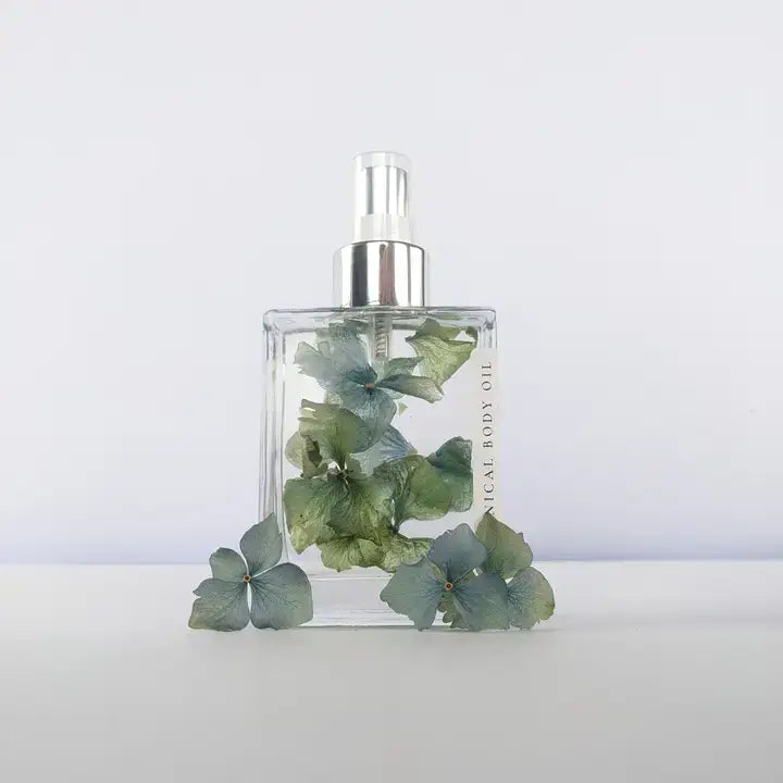 Indulge in the luxurious, handcrafted Herbal Infused Blue Hydrangea with Lime & Salt Essence. Infused with blue hydrangea floral, coconut and Sacha inchi oil, it nourishes and hydrates your skin with high levels of vitamin E and Omegas 3 and 6. Created by a naturopath, this clean, vegan, and cruelty-free body oil is a true match made in heaven.