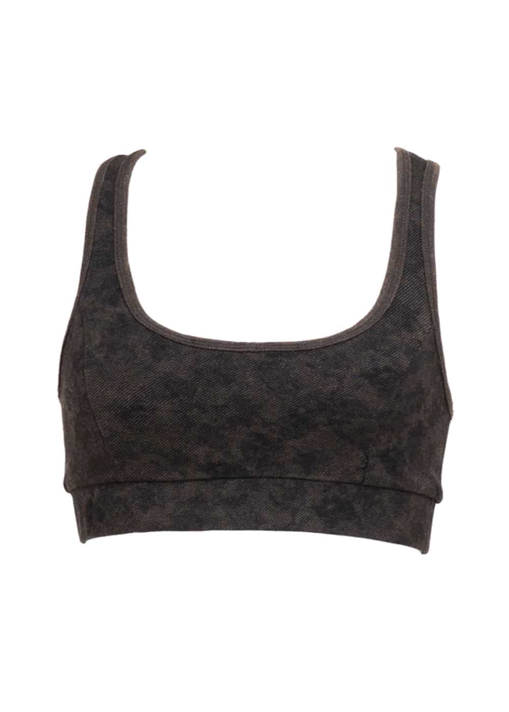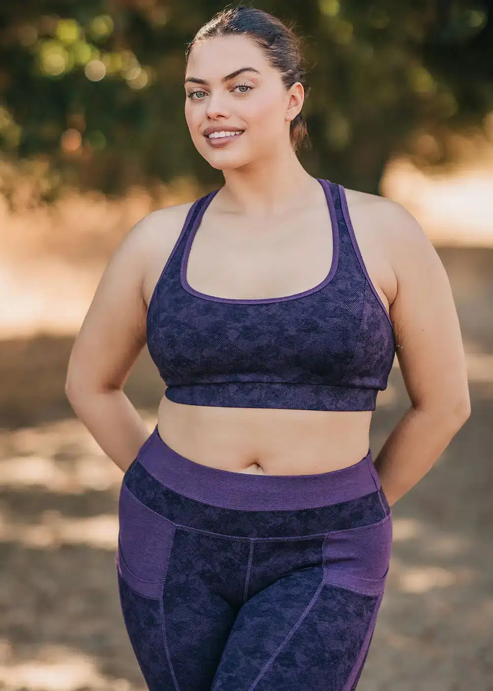 Rock your workout in this season’s cross fit, hot yoga bra made from heavyweight bamboo and organic cotton blend, featuring a cool camo print. The Peak Bra is our newest twist on sporty bras that let you breathe and protect the planet. Celtic Cross straps in the back, and is edged in solid trim for a touch of fun. Classic tank-style sports bra in the front, and our most supportive bra ever with extra fabric in the back.
