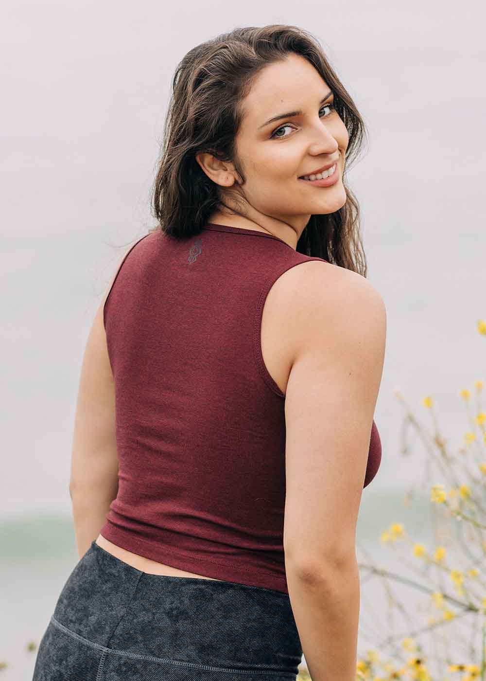 Elevate your zen yoga vibes with our new bamboo tank in unique melange and micro textures. Based on our best-selling Mantra Tank, this cropped version features a scoop neck and lower scoop back for a dash of yin and a splash of yang.