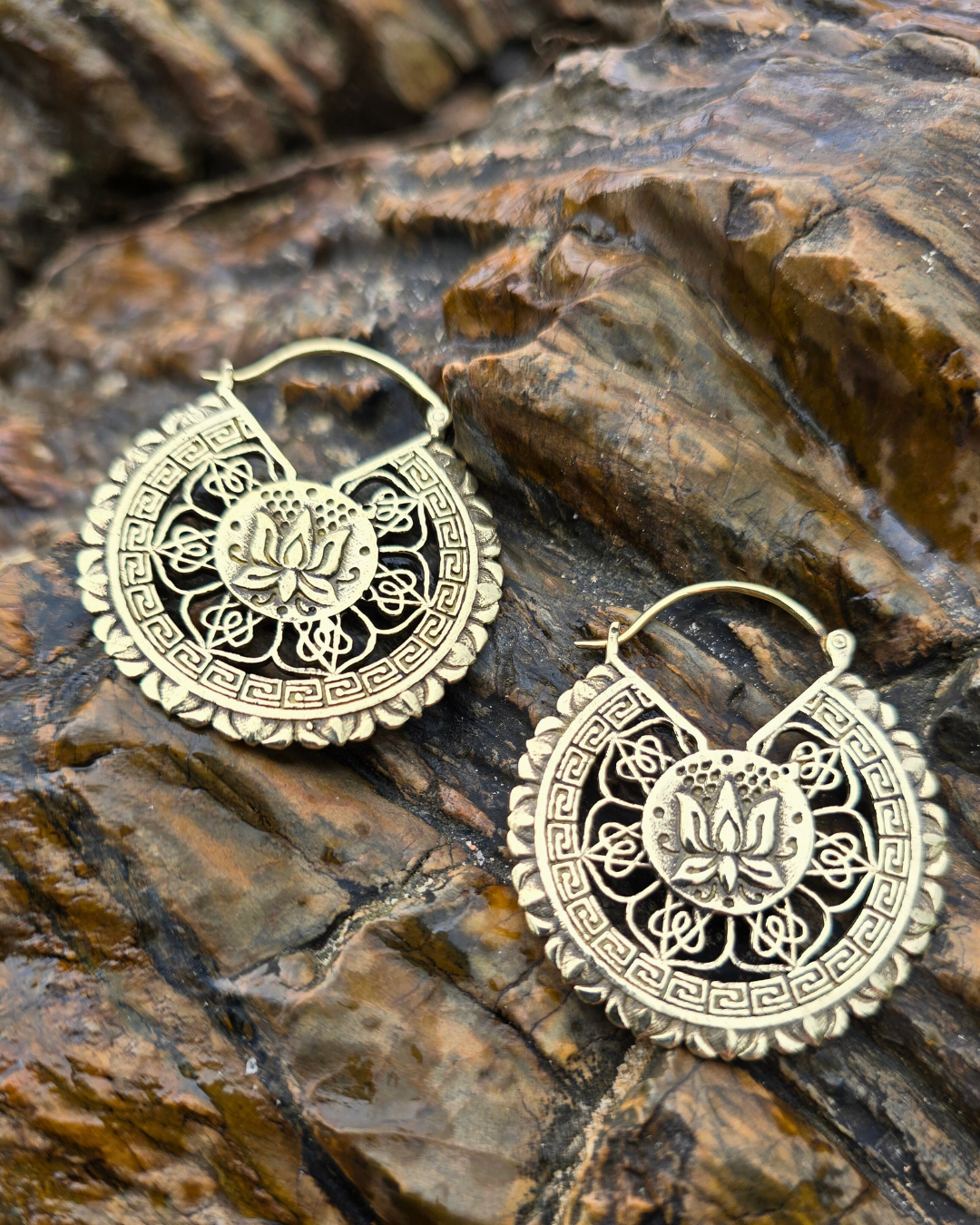 Introducing the Yemaya Lotus Earrings - a fusion of divine symbolism and natural elegance. Inspired by the graceful lotus flower, symbolising purity and enlightenment, and the oceanic spirit of Yemaya, these earrings embody both serenity and strength.
